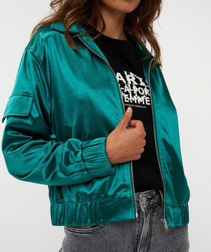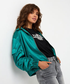 This satiny bomber jacket is amazing !