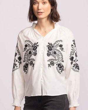 Romantic vibes with this adorable blouse in White with Black embroidery.