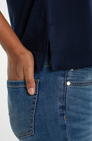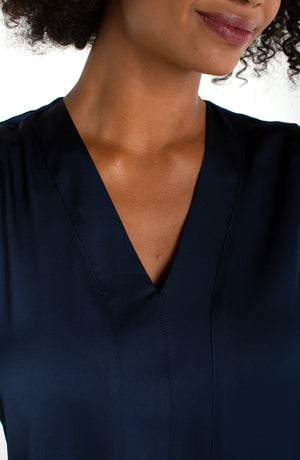 Perfect under your favourite blazer, or by itself, this satin feel, Vee neck top is quiet luxury.